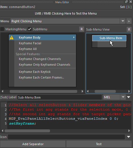 - Each type of picker button can be attached with right / left mouse clicking menus (marking menu & normal menu):